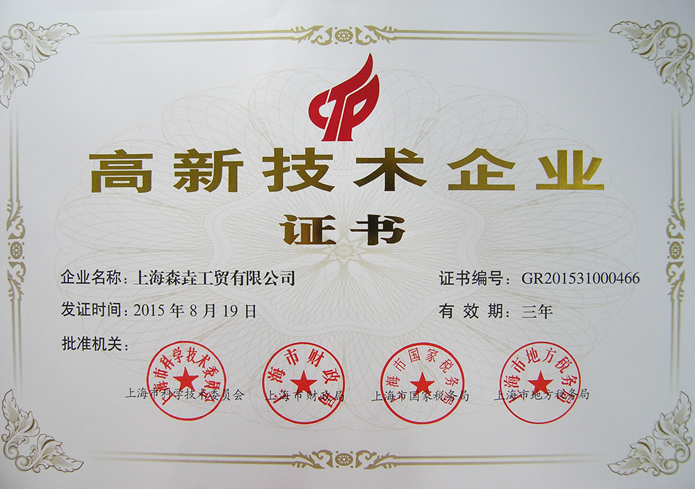 熱烈慶祝我司上海森垚工貿(mào)有限公司,簡(jiǎn)稱森垚儀表,榮獲高新技術(shù)企業(yè)證書,并在最近剛剛拿到了實(shí)體證書,由上海市科學(xué)技術(shù)委員會(huì),上海市財(cái)政局,上海市國家稅務(wù)局,上海市地方稅務(wù)局共同頒發(fā),有效期為三年。