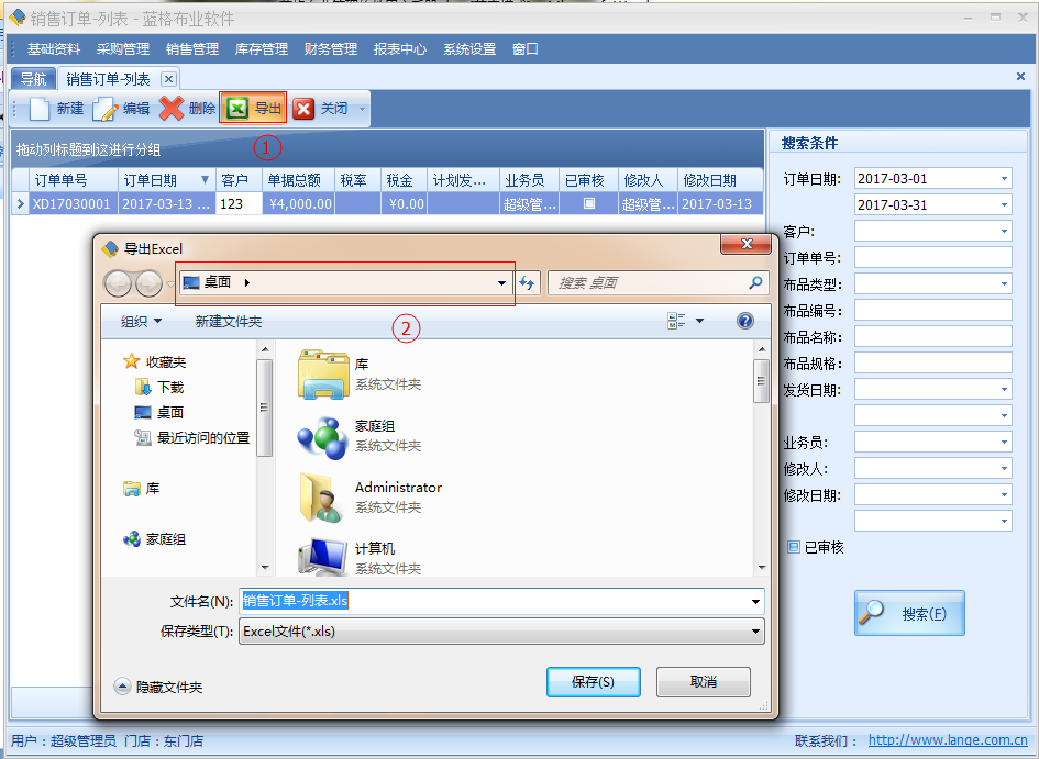 導出是把當前列表中所有的記錄以 Excel 表格方式導出。在銷售訂單列表上點擊工具欄【導出】按鈕。