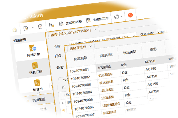 軟件滿足門店(鉆石、金、銀、翡翠、玉器等)進銷存、鑲嵌、委外加工等管理。