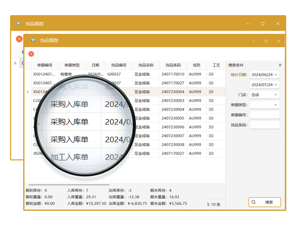珠寶首飾貨品進出庫跟蹤