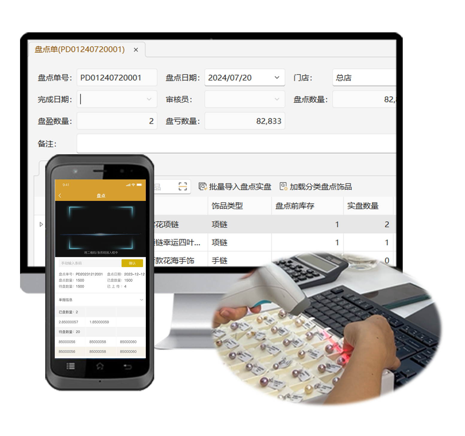 快速掃描條碼:無論是入庫、出庫、盤點、銷售、禮品兌換、換貨、退貨、調撥、收款,還是檢索珠寶首飾,都支持通過無線掃描槍設備進行精準掃描,既方便又快捷。