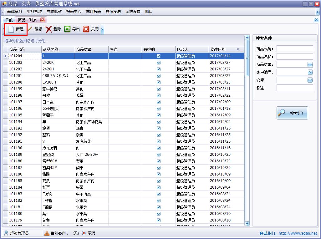 傲藍冷庫信息管理系統對于貨品資料的建檔管理,以便于業務操作時的選擇自動生成,例如入庫單操作,選擇所要入庫的商品即可,免除了人為重新錄入的繁瑣。
