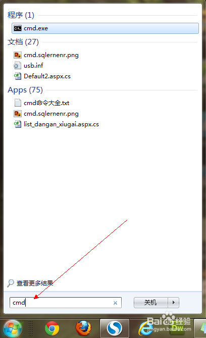 2)在搜索框中輸入cmd字樣,出現下圖。