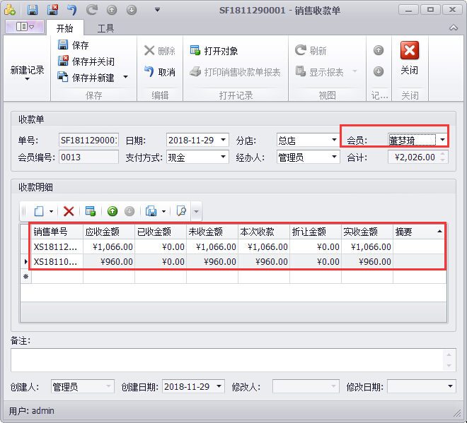 當配件批發業務客戶需要月結時,一個月內該客戶購買了幾批配件統一到月底結算,這時可以在收銀軟件的【銷售收款單】中建立新的收款,軟件通過選擇客戶自動帶出多條銷售單,一鍵收款,為汽配銷售店提高經營管理的效率。